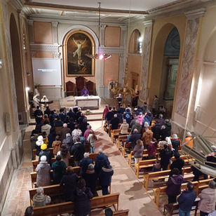 Voilà plusieurs années que nous marquons l’entrée dans le temps liturgique de l’Avent par une petite marche depuis l’église Saint-Agne, jusqu’à l’église Sainte-Madeleine de Pouvourville. Belle participation cette année : nous étions une cinquantaine de personnes, paroissiens , jeunes et enfants de la catéchèse, des scouts, de l’aumônerie des collèges et lycée, et leurs parents, pour prendre la route comme nous l’avons chanté plusieurs fois durant notre petit pèlerinage : « voici le temps de prendre la route, voici le temps de commencer, voici le temps d’être en Avent ».